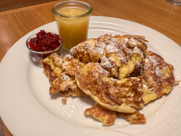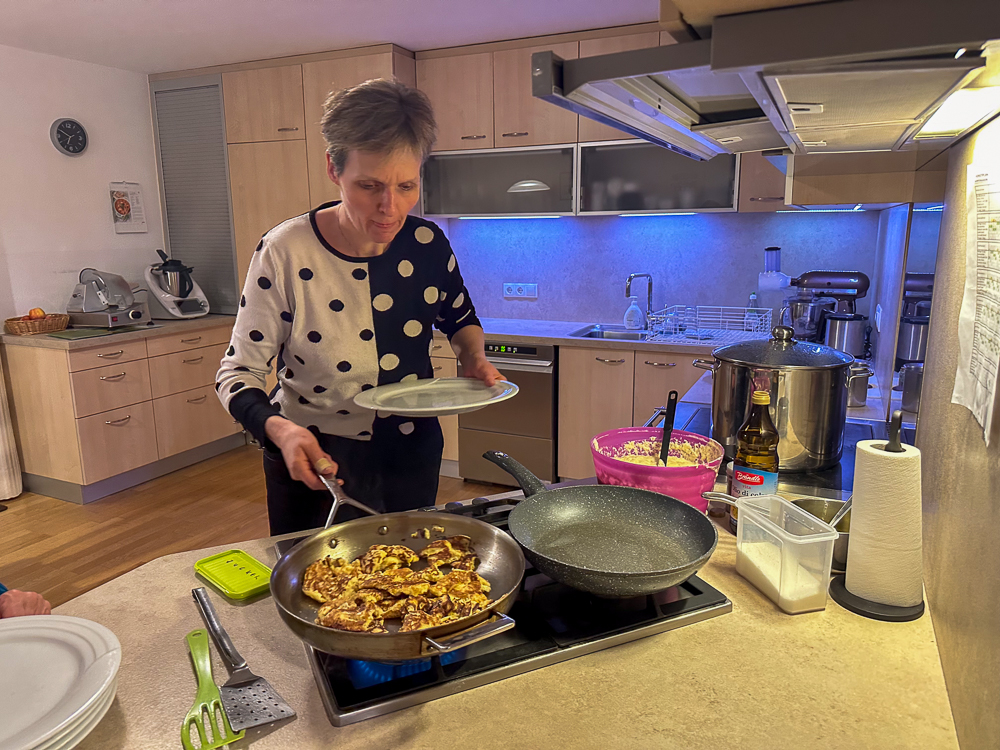 Noi abbiamo imparato a fare le frittelle di mele e lo strudel (entrambi con la salsa di vaniglia calda). Ma anche il Kaiserschmarren, la gustosa omelette spezzettata con marmellata di ribes e purea di mele. Una bontà!