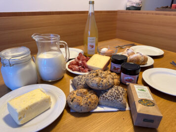 Insieme a Cornelia e Reinhard siamo entrati a contatto con la loro vita contadina: dalla conoscenza degli animali del maso (mucche, pecore, pony, conigli,..), alla preparazione dei piatti tipici, ma anche l’esplorazione di tanti posti belli nei dintorni. Particolarità sicuramente apprezzata, dalle famiglie e non, la possibilità di avere anche la cena. Preparata con i loro prodotti: dai canederli alle tagliatelle con ragu di cervo, dalla gulash suppe al formaggio fuso con polenta e così via. Ogni giorno un piatto e un dolce diverso, da prenotare il giorno precedente.