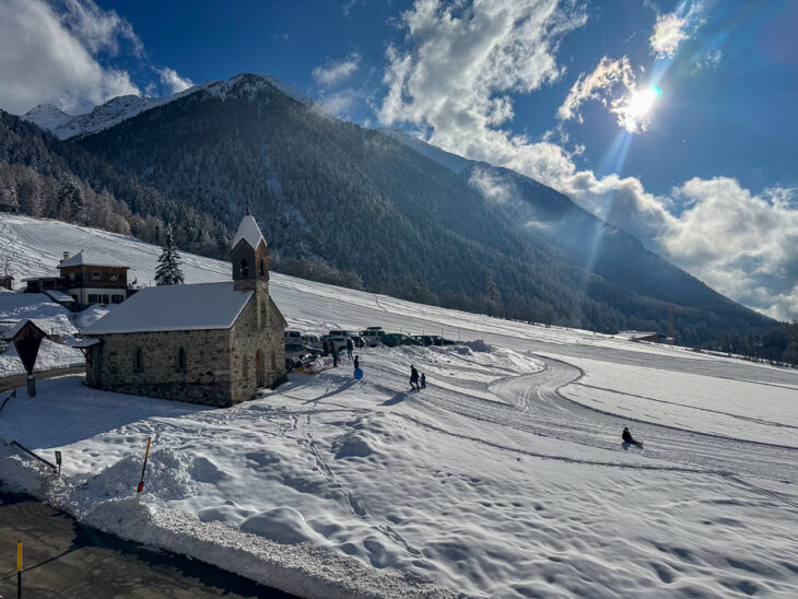 Il maso, con la stalla, si trova proprio in fondo alla valle, a circa 20 minuti dal paese di Malles (con pasticceria notevole e tanti negozi carini, sia di prodotti alimentari che di altro). Natura incontaminata, una quindicina di cime alte più di tremila metri e una pista da slittino solo per voi saranno i primi aspetti che vi conquisteranno. Slitta, bob e ciaspole sono a disposizione libermente.