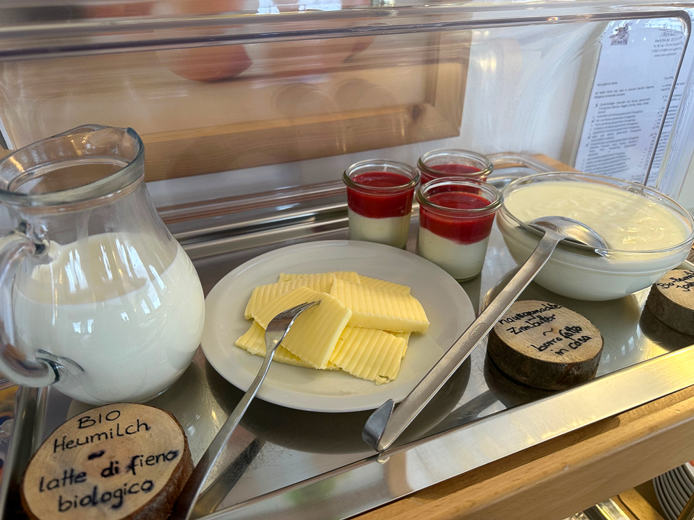 Poi c’è la colazione, che può essere servita in camera scegliendo la sera prima i prodotti nella lista, con le bontà del maso: uova, burro, latte, yogurt, marmellate, succhi, formaggi, affettati, tisane e altre prelibatezze.