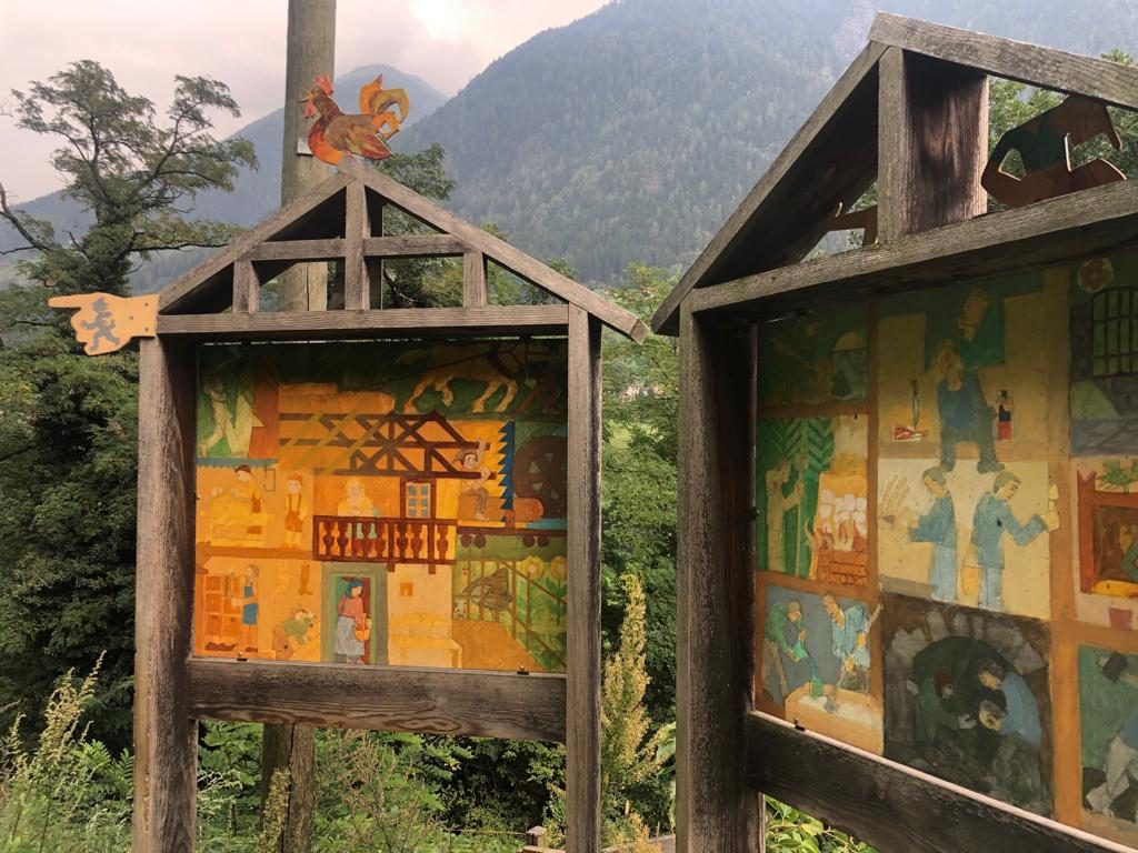 Salendo incontrerete le prime bacheche, con i disegni a tema “Norggen”, i nani del posto, ispirati ai minatori che nel medioevo lavoravano nella vicina miniera di Monteneve. Sono 13 le tappe del sentiero, create dal meranese Matthias Schönweger, con leggende e vari giochi per i bambini.