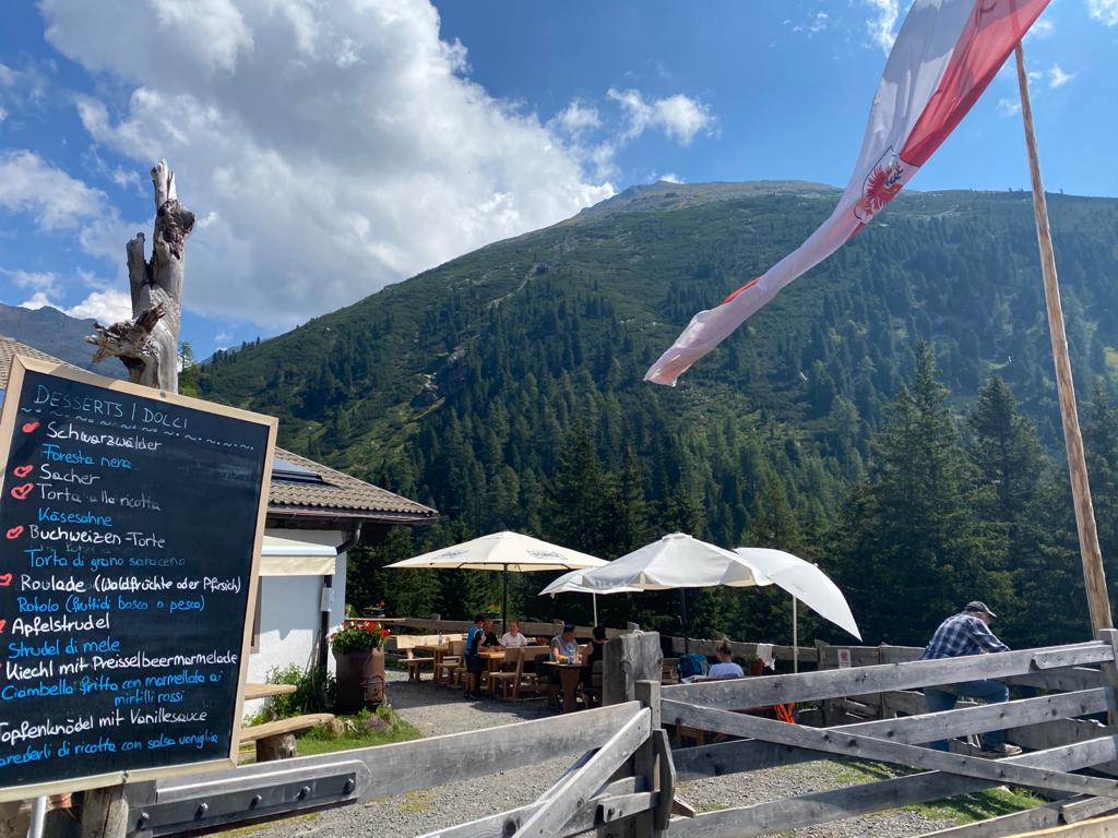La malga/ristorante, aperta da inizio giugno a fine settembre, ha diversi tavoli all’aperto. Piatti buoni anche se non indimenticabili. Molto carino invece il parco giochi accanto alla malga, con trampolino, sabbiera, scivolo, altalene e giochi vari.
