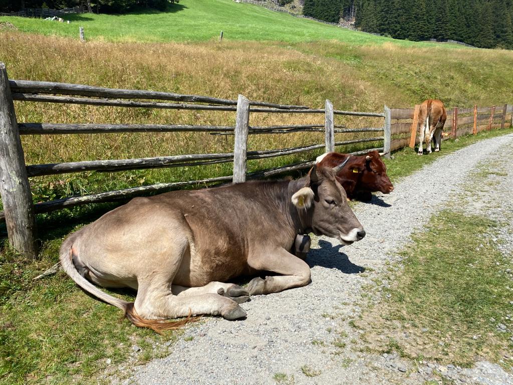 Per il ritorno, scendete dal sentierino proprio accanto alla malga: più ripido e sconnesso, ma non esageratamente difficile da fare in discesa. Vi aspettano pascoli verdi, baite in legno e mucche placide al pascolo.
