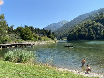 Non è tra i laghi più noti del Trentino, ma anche A Roncone, in Valle del Chiese, c’è un lago molto carino per le famiglie, che qui troveranno anche piscina, parco giochi, e spiaggia con sdraio. Si possono anche noleggiare canoe e pedalò. Tuffarsi dal pontile in legno invece piacerà molto ai bambini più grandi, e anche agli adulti, perché no? Trovate il nostro racconto in Divertirsi al Lago di Roncone.