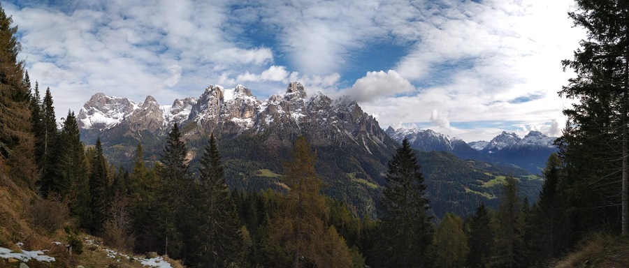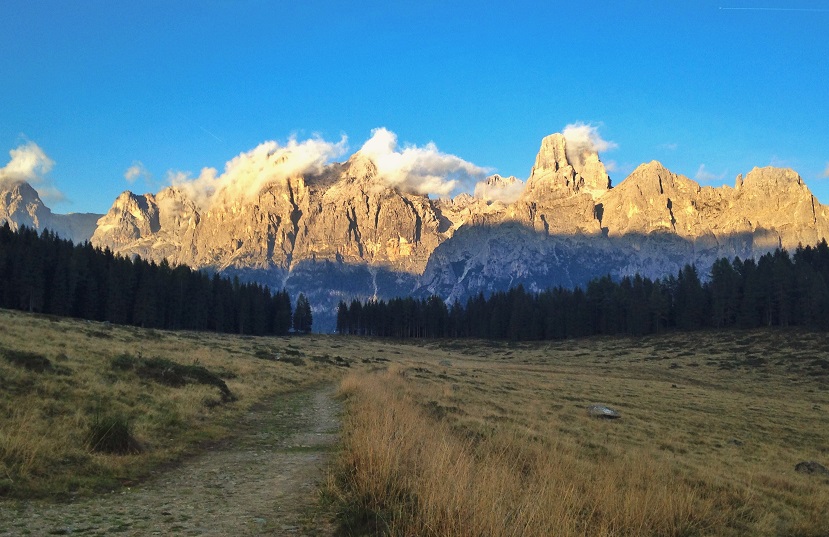 Se invece optate per una semplice passeggiata, dal ristorante Miralago Calaita proprio accanto al parcheggio (foto sopra), prendete la strada forestale sentiero 350-16 e poi sentiero 9, che vi porta fino a Malga Scanaiol, quota 1745. Dal lago impiegherete circa 1 ora con poco dislivello, circa 200 metri, non percorribile con passeggino. La malga è chiusa, ma la sua posizione è meravigliosa per ammirare le Pale di San Martino.