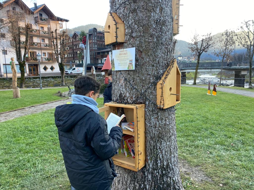 L’albero dei racconti: dove scegliere delle interessanti letture e racconti legati al bosco, all’inverno, alla fauna, alla flora, all’amicizia. Bambini e adulti potranno poi prendere i libri, per farli viaggiare nei posti più disparati per far sì che altri li trovino e li leggano.