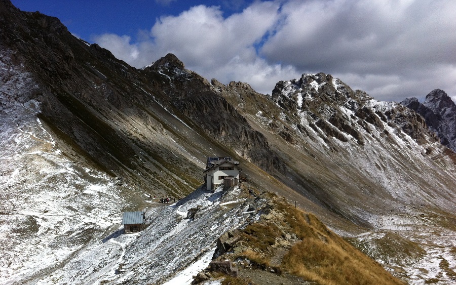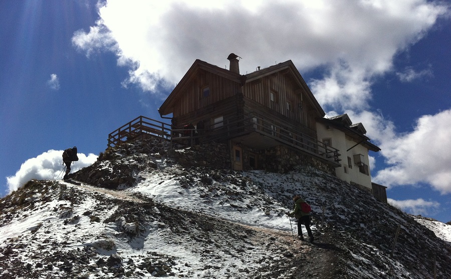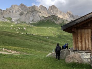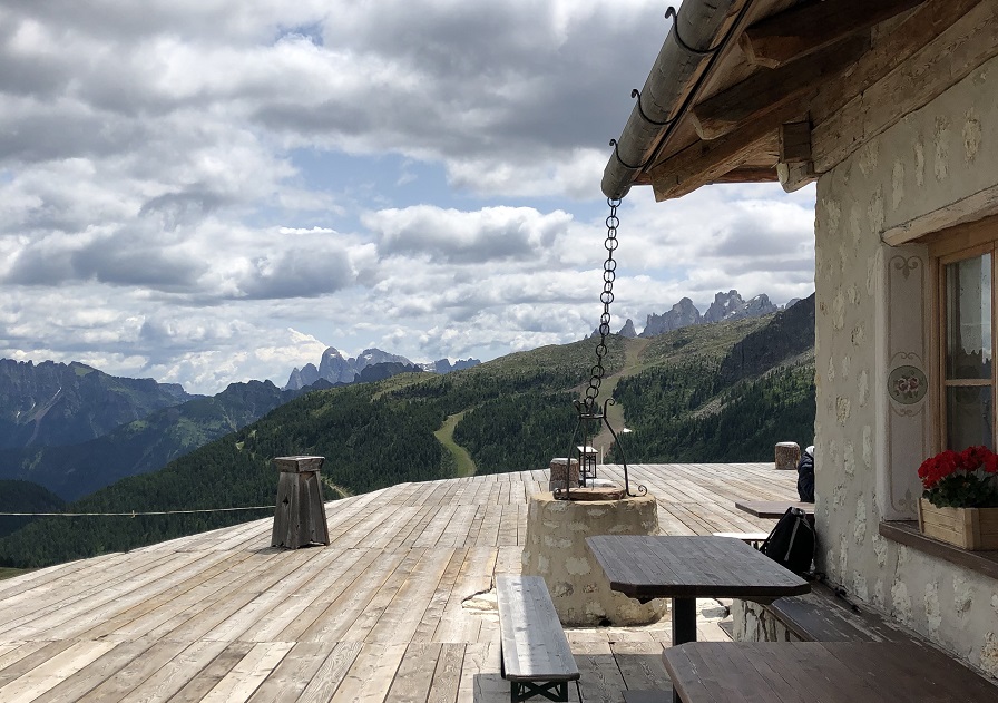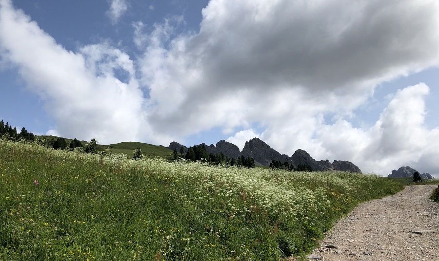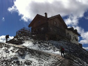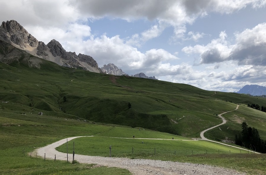 In lontananza si può scorgere il Rifugio Passo delle Selle, raggiungibile in circa 1.30 di escursione, noi la consigliamo solo alle famiglie con bambini allenati.
