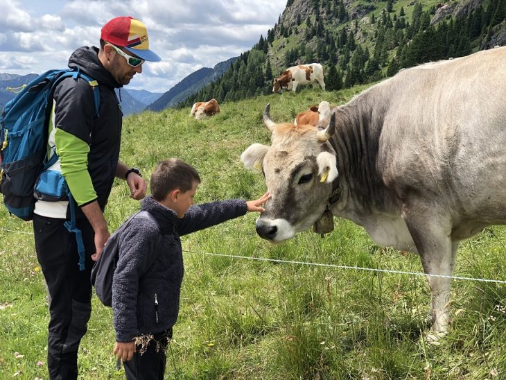 Il sentiero è molto comodo e accessibile anche con il passeggino da trekking, in circa 40 minuti si arriva alla Baita Paradiso, dove noi ci siamo fermati per pranzo, guastandoci un “piatto Paradiso” con polenta, formaggio fuso, salsiccia e funghi, tagliatelle con ragù di cervo e un tagliere di affettati. Ci siamo proprio trovati bene tutto super consigliato, davvero ottimo con molti prodotti di loro produzione. L’idea era quella di fotografare i piatti ma l’acquolina ha avuto la meglio.