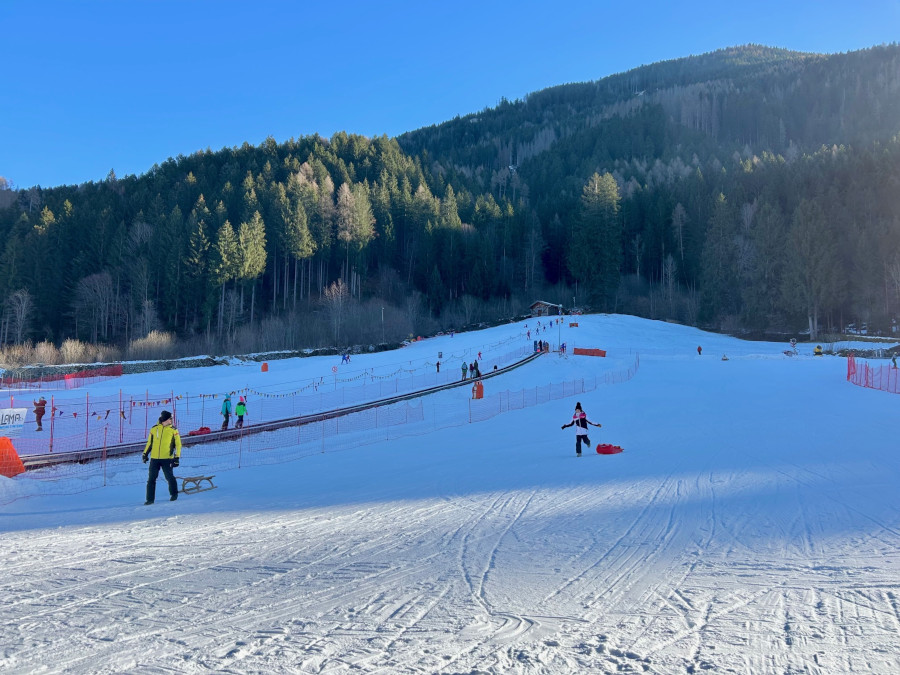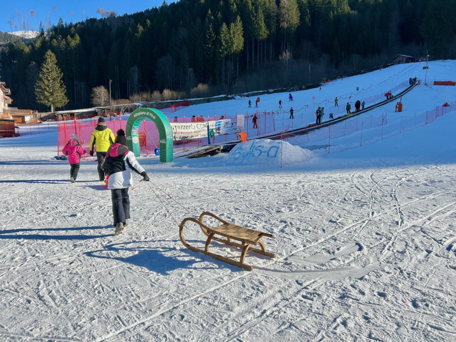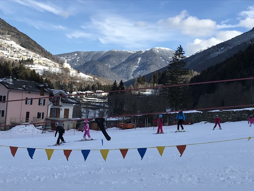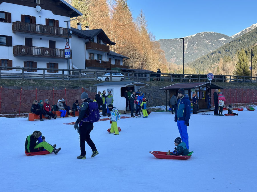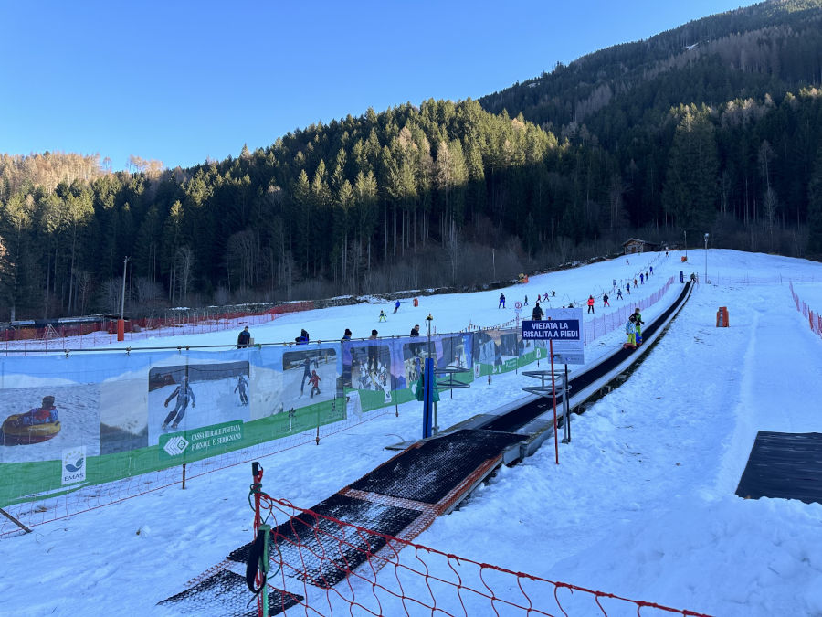 Nel mezzo un comodo tapis roulant che consente ai più piccoli di recuperare le energie e lo skilift per chi invece ha gli sci ai piedi.